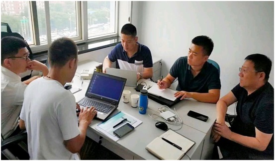 王增财(左1)与区分行肉牛项目组成员在北京总行汇报项目整体架构